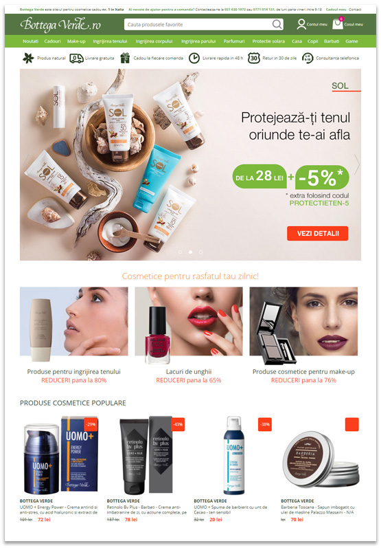 Since the launch of the online store in Romania, ControlF5 has accepted a particularly exciting challenge: to implement a complete eCommerce solution for the famous Italian brand that will give Romanian clients a complete online shopping experience and integrate it with the processes, business model and infrastructure used by BottegaVerde.ro