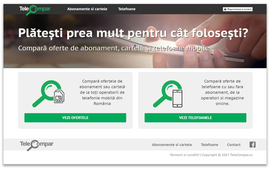 Telecompar is the first independent comparer of mobile plans, mobile internet and mobile phones deals, from Romania